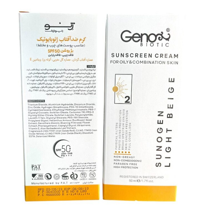 ضد آفتاب ژنوبایوتیک پوست چرب بژروشن spf50